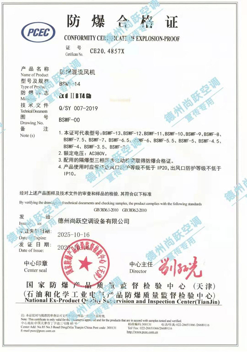 我公司全系列產(chǎn)品均可根據(jù)用戶及設(shè)計(jì)院對防爆級別的要求制作為防爆產(chǎn)品,防爆產(chǎn)品均已通過防爆產(chǎn)品質(zhì)量監(jiān)督檢驗(yàn)中心檢驗(yàn)合格,并配發(fā)整機(jī)防爆合格證書及檢測報(bào)告。